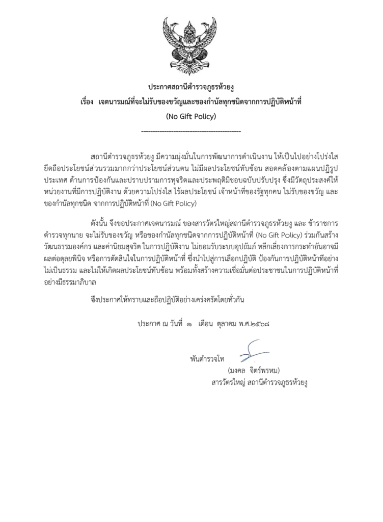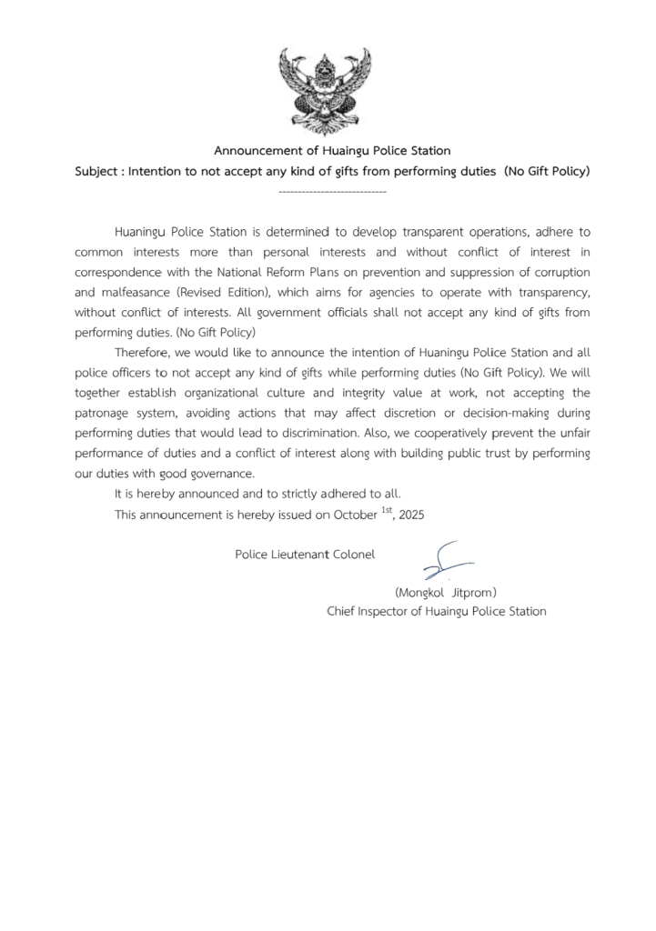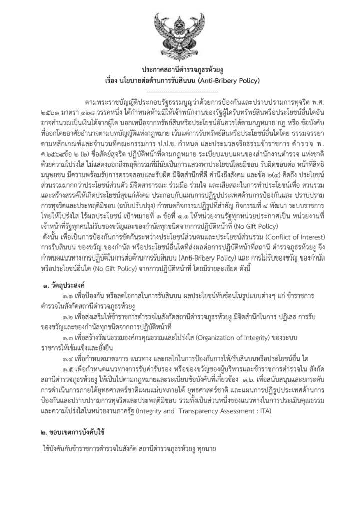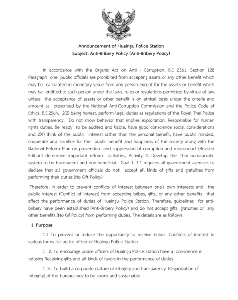 018 : ประกาศนโยบายต่อต้านการรับสินบน (Anti-Bribery Policy)