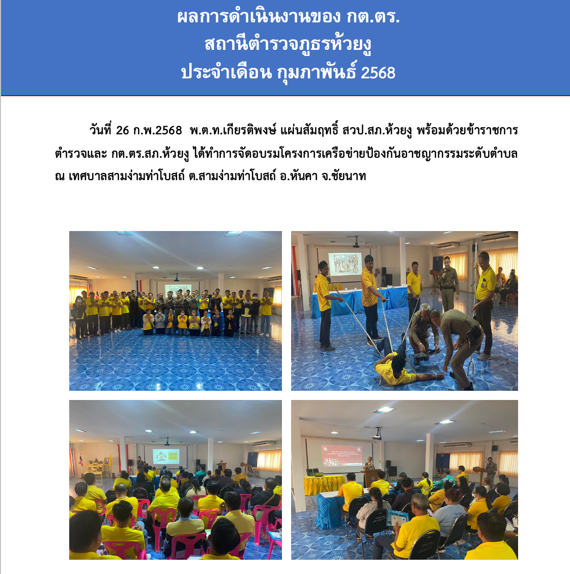 O4 : ข้อมูลคณะกรรมการตรวจสอบและติดตามการบริหารงานตำรวจ (กต.ตร.) ของสถานีตำรวจ คำสั่ง-กต.ตร.สภ.ห้วยงู ดาวน์โหลด ตุลาคม 2567 พฤศจิกายน 2567 ธันวาคม 2567 มกราคม 2568 กุมภาพันธ์ 2568 มีนาคม 2568 เมษายน 2568 ตุลาคม 2567 พฤศจิกายน 2567 ธันวาคม 2567 มกราคม 2568 กุมภาพันธ์ 2568 มีนาคม 2568 เมษายน 2568 ข้อมูล ณ วันที่ ๓๑ มีนาคม ๒๕๖๘
