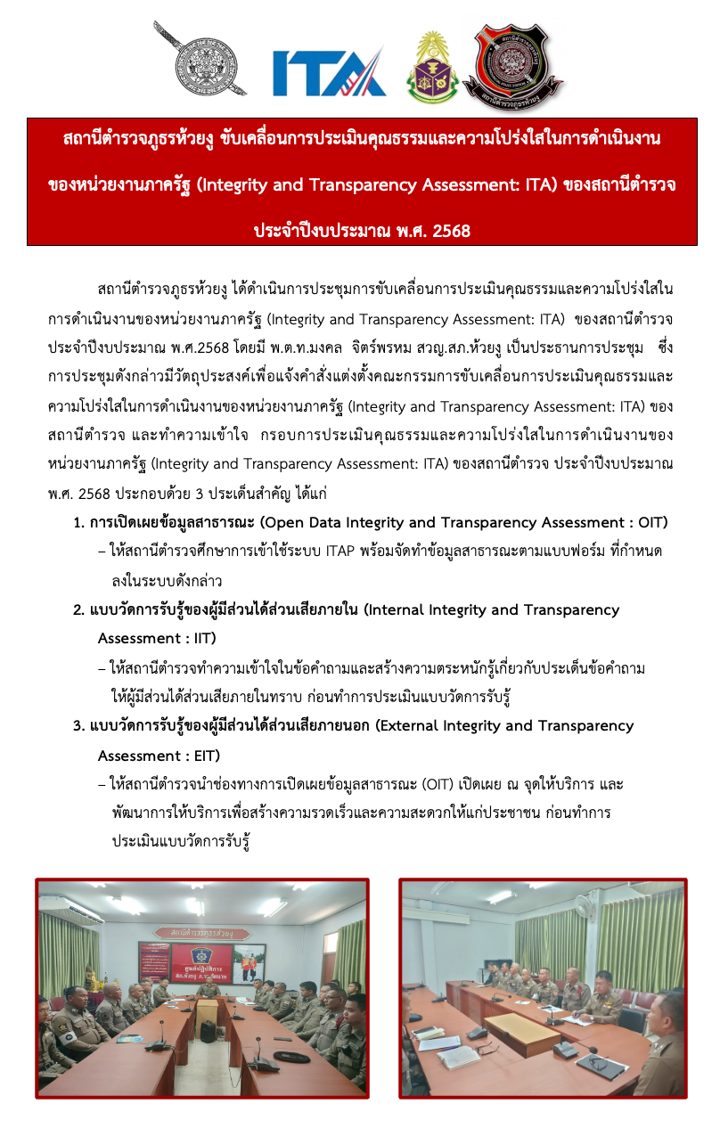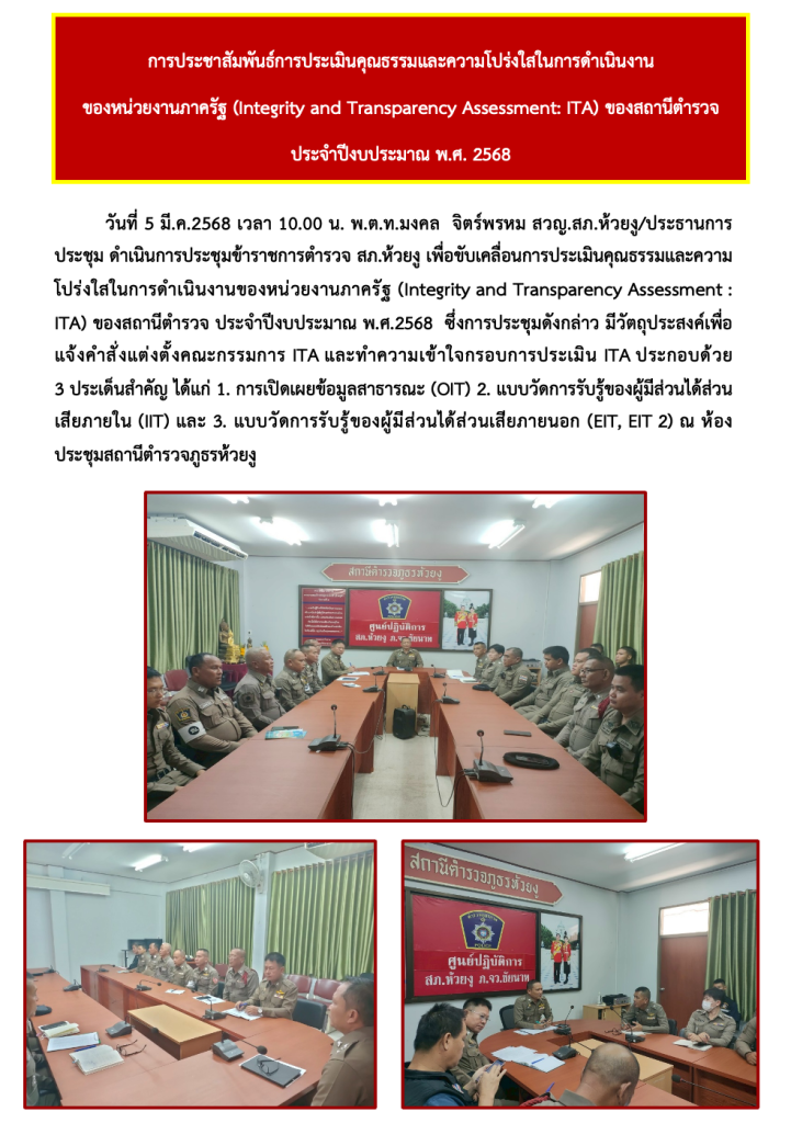 025 : การรายงานผลการดำเนินการตามมาตรการการยกระดับคุณธรรมและความโปร่งใสภายในหน่วยงาน